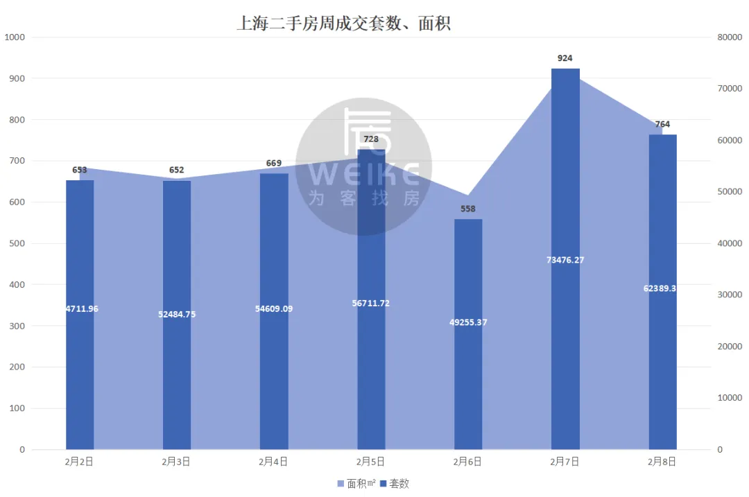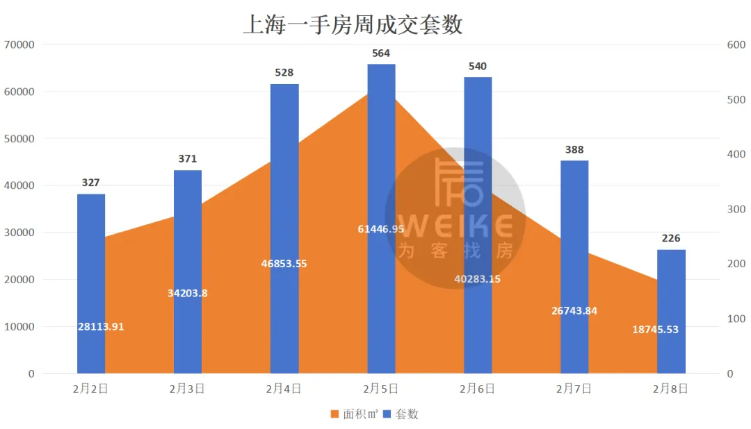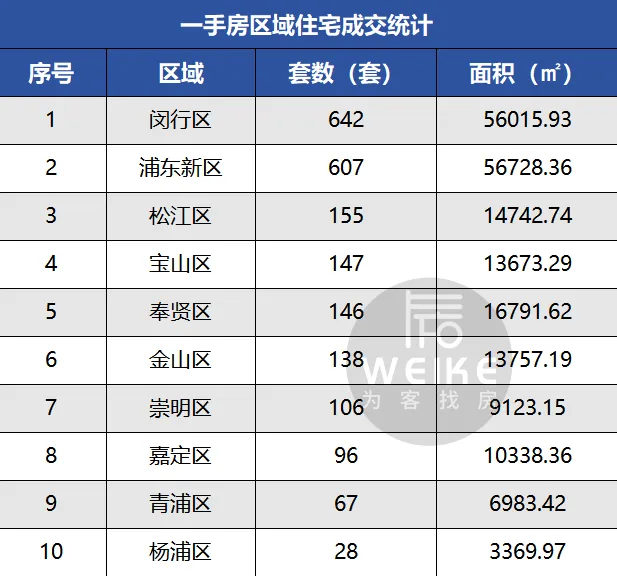 据为客找房统计:上海各区一手房共计备案成交2944套,成交面积25.64万㎡。环比上周3418套下降13.87%。