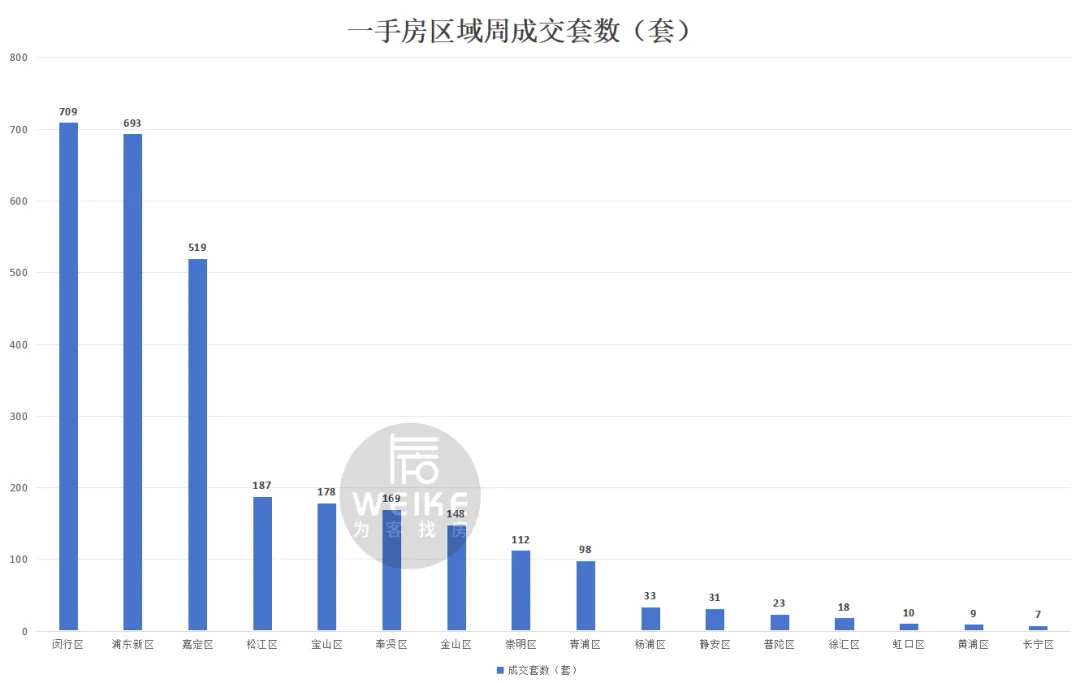 其中闵行区网签成交709套,列居榜首,浦东新区网签成交693套,排名第二,嘉定区网签成交519套,排名第三。