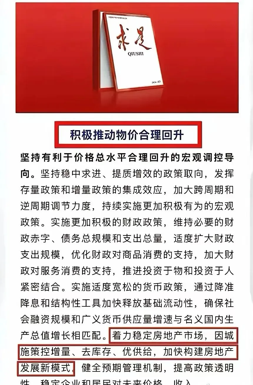 政策将“稳定房地产市场”作为推动物价合理回升的重要抓手,意味着会通过适度宽松的货币政策(如降准降息)降低购房成本,同时用积极的财政政策提振消费信心,为楼市提供有力支撑。