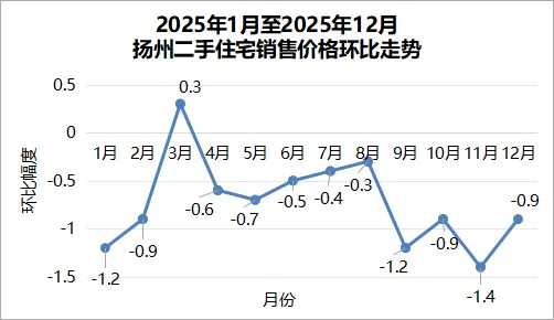 2025年扬州二手住宅销售价格环比1涨11跌: