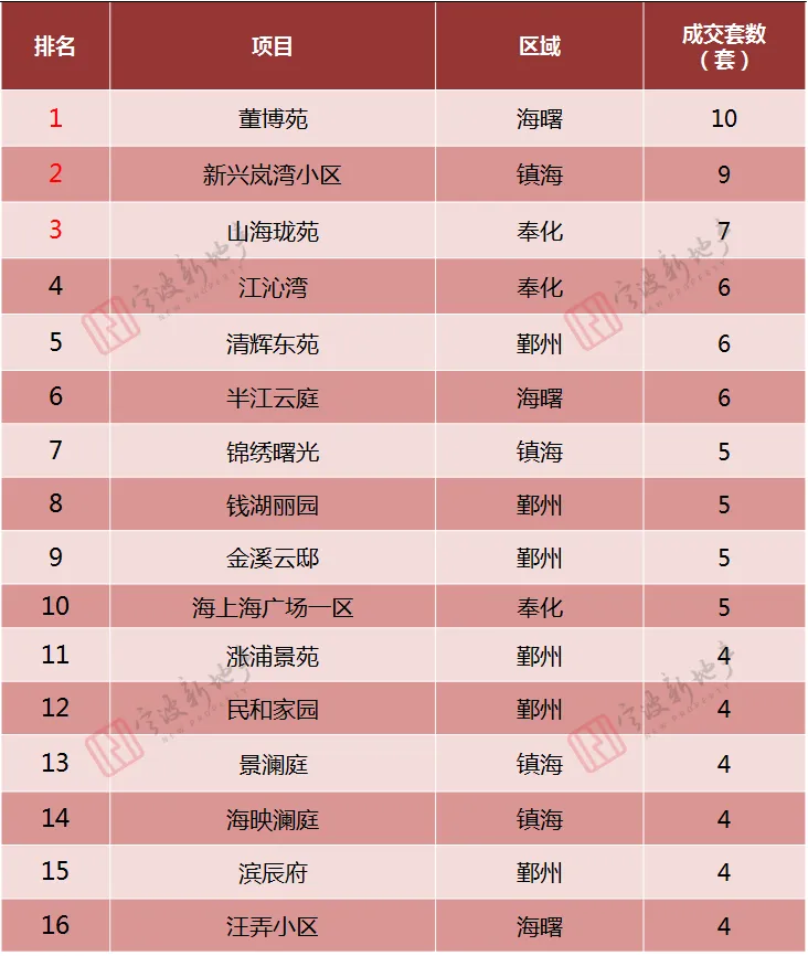 根据宁波新地产的统计