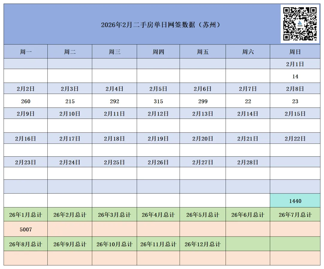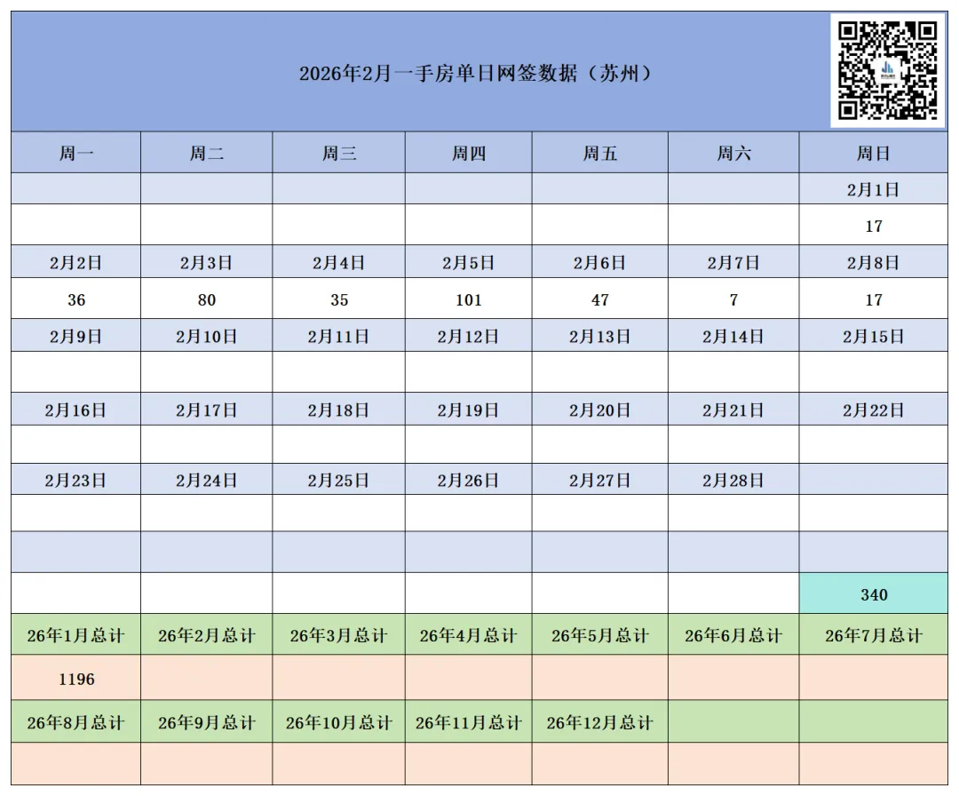 本月截至2月8日(周日),苏州六区住宅累计网签【1780套】,其中二手房累计网签【1440套】、新房累计网签【340套】。