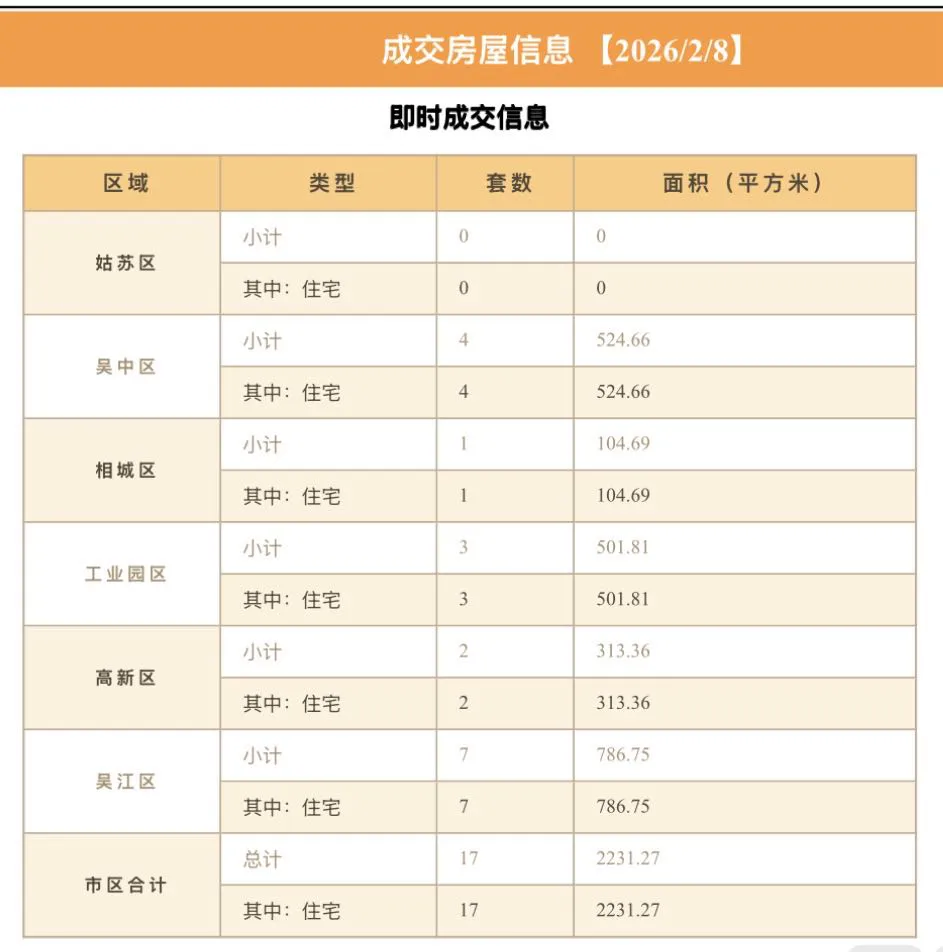 苏州新房住宅可售【41526套】,较上一日减少【17套】。