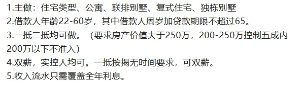 9.住宅一抵二抵7成,独栋别墅一抵7成,二抵0.65成