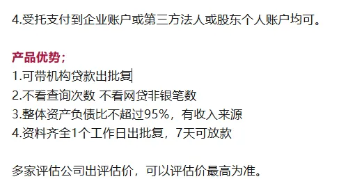 贷款额度高(房价7-10成),利息低(年化2.14%),还款压力小(先息后本,借100万月供1800+),周期长(3-20年)、灵活(随借随还,到期无本续贷)!