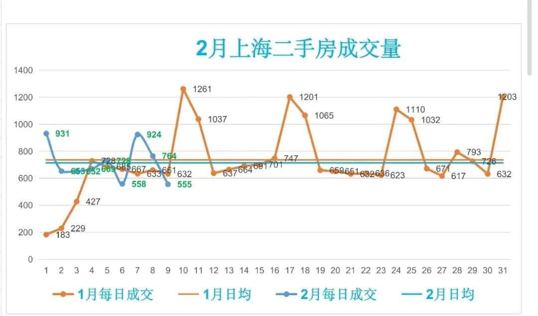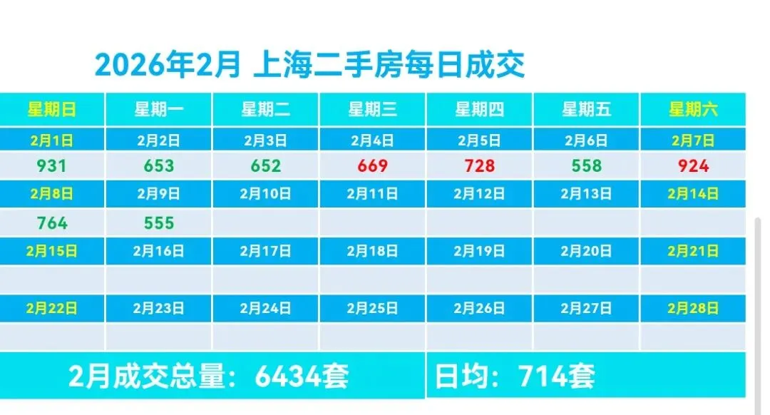 🏡2月,上海二手房成交量累计6434套,日均成交714套,较上个月日均减少22套(降幅2.99%)。