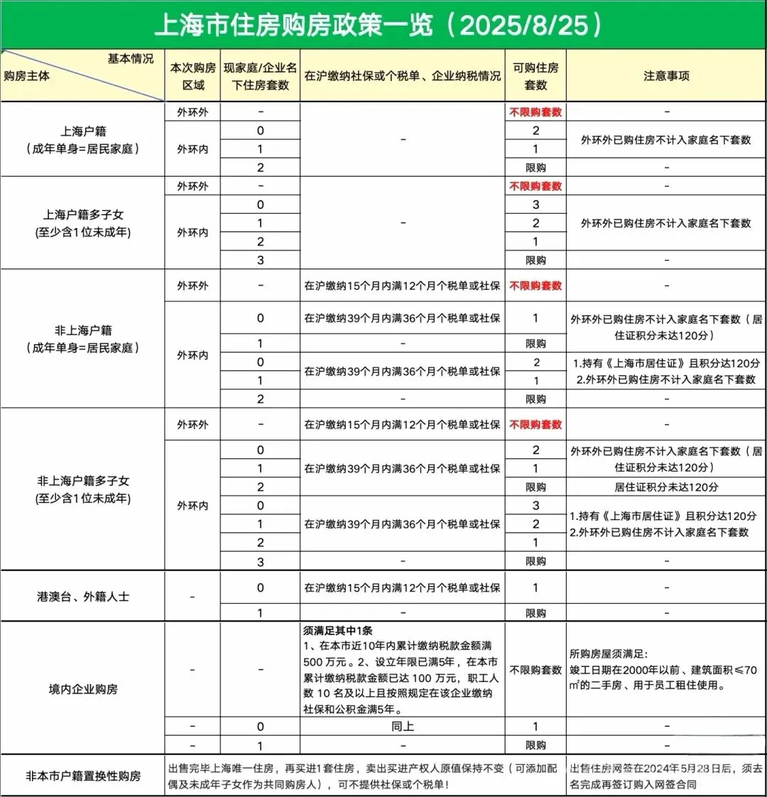✅非沪籍家庭个人所得税满一年,外环内限购0套,外环外不限购;