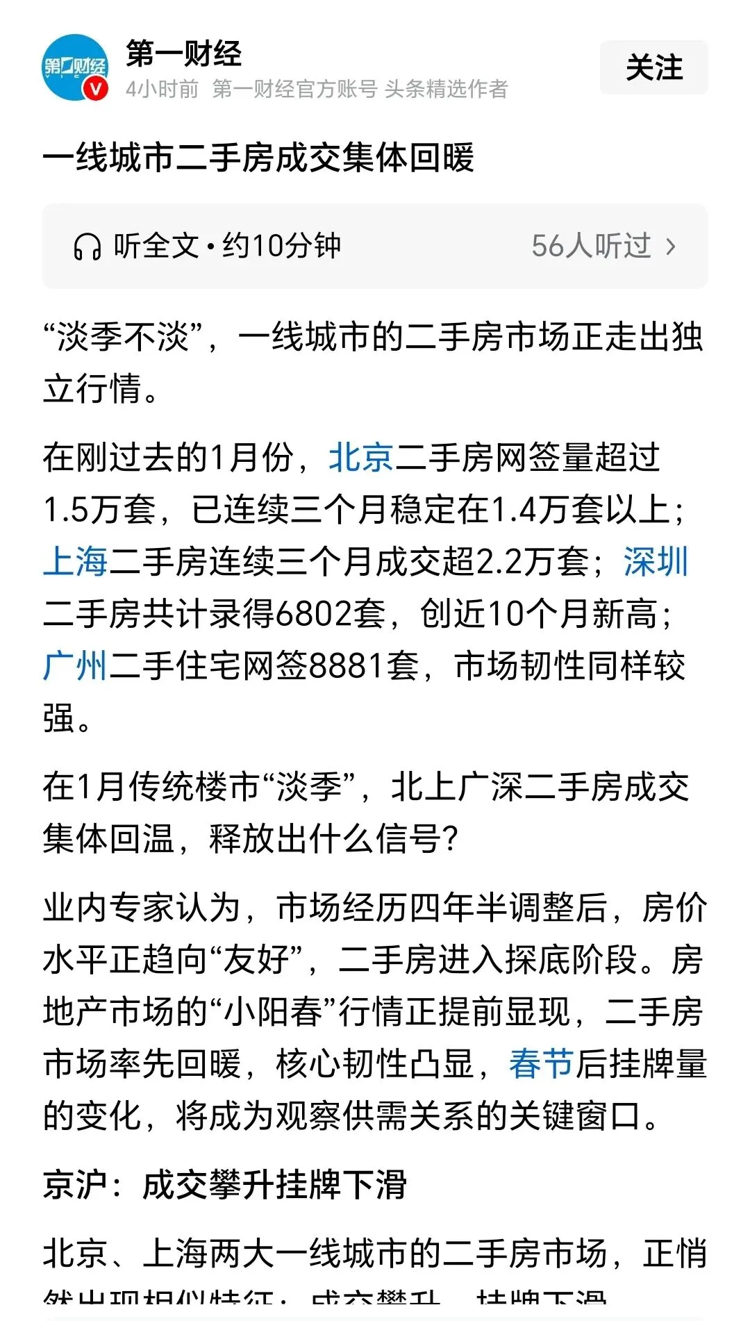刚看到一财发的一线城市二手房回暖的消息,印证了我之前的判断: