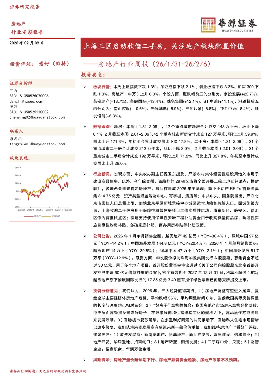 - 核心趋势:房地产调整有望进入尾声(全球平均跌幅35%、调整6年,当前调整已相对充分);高品质住宅迎来结构性机会;香港楼市复苏延续,港资发展商价值重估可期。