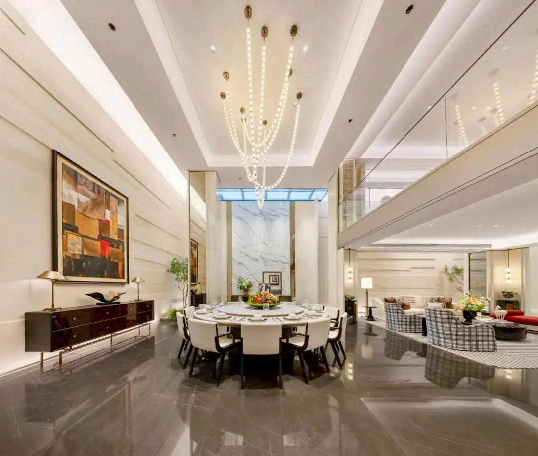 首层约3.6米的轩朗层高与约10米以上的南向大面宽,奠定了世家厅堂的从容气度;约6.4米层高的地下立体聚场,既可作父辈的雅藏馆、主人的会客厅,亦可化为下一代的创造乐园;而前庭后院的天地,则成为记录四季流转、承载家族欢愉的永恒舞台。这不仅是对居住面积的扩容,更是为家族关系、兴趣传承与代际共生,定制了一套可随生命历程自由演变的立体框架。