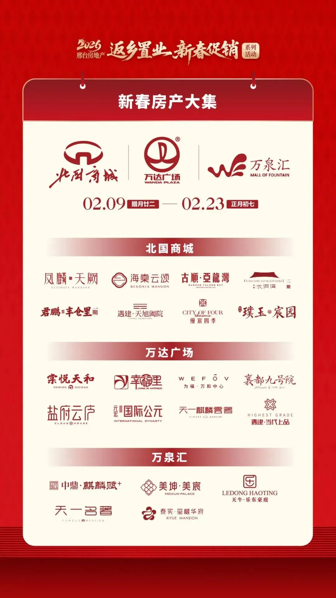 此次新春房产大集活动是2026年邢台市“返乡置业 新春促销”系列活动之一,集合了全市优质楼盘,大家在逛街的同时就能一站式看房选房。同时,在大集现场不仅有专业顾问提供购房指导,还能享受独家优惠折扣,避免了大家来回奔波比价的烦恼。
