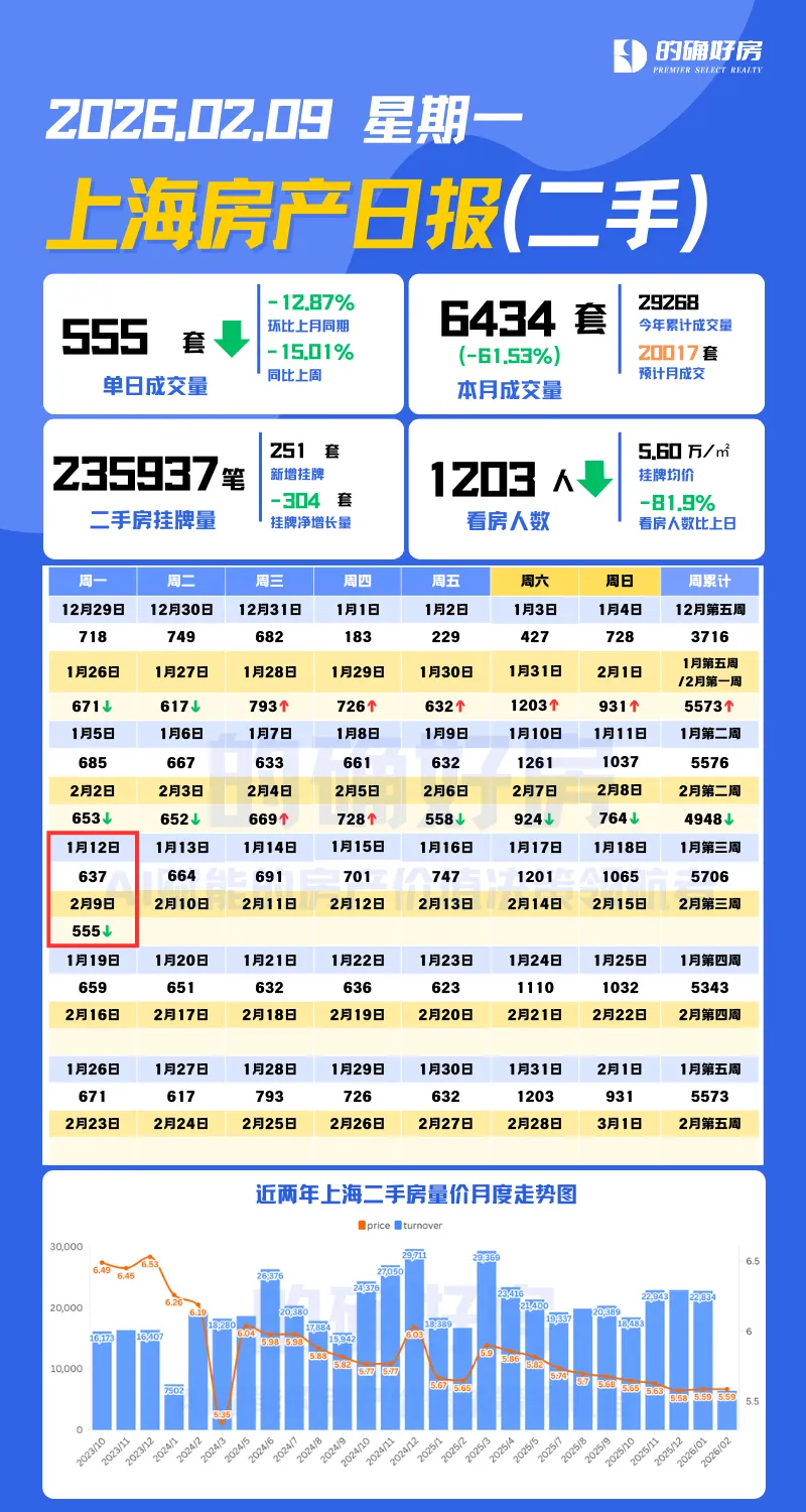 2026年2月9日上海二手房网签数据