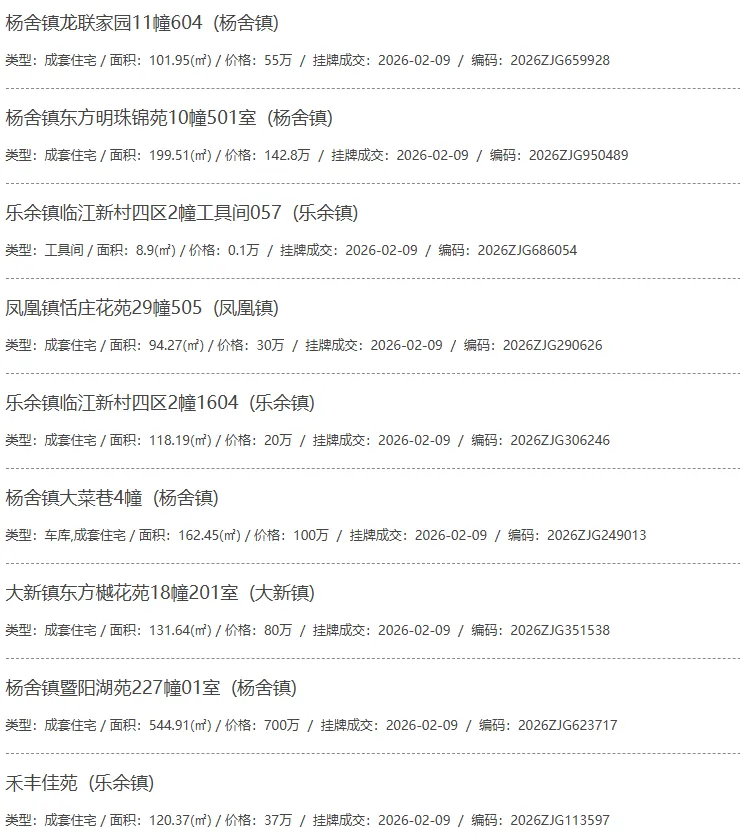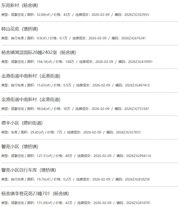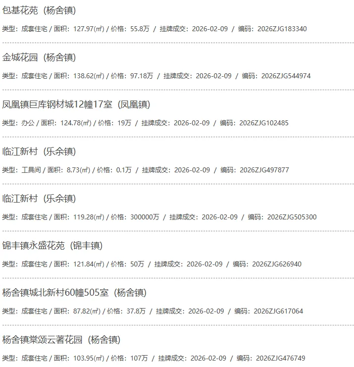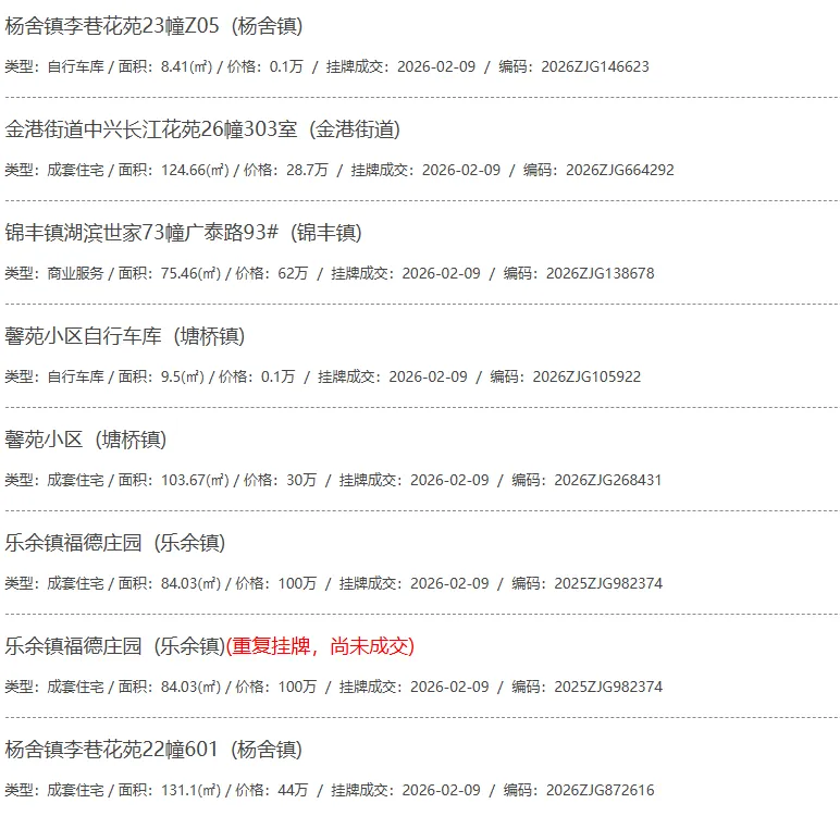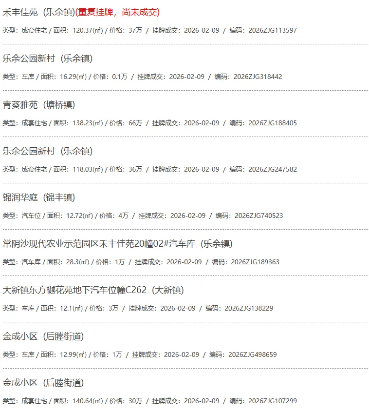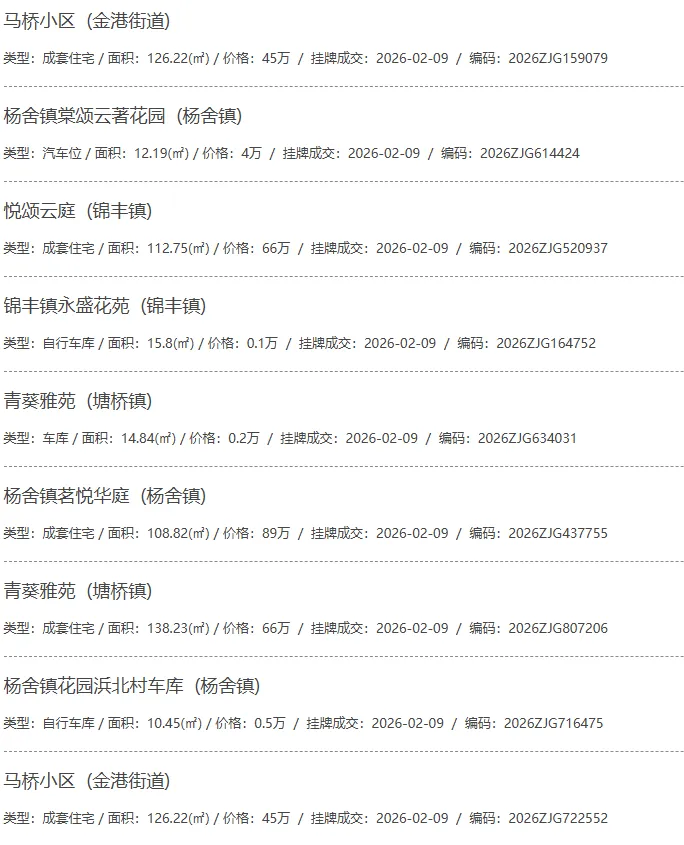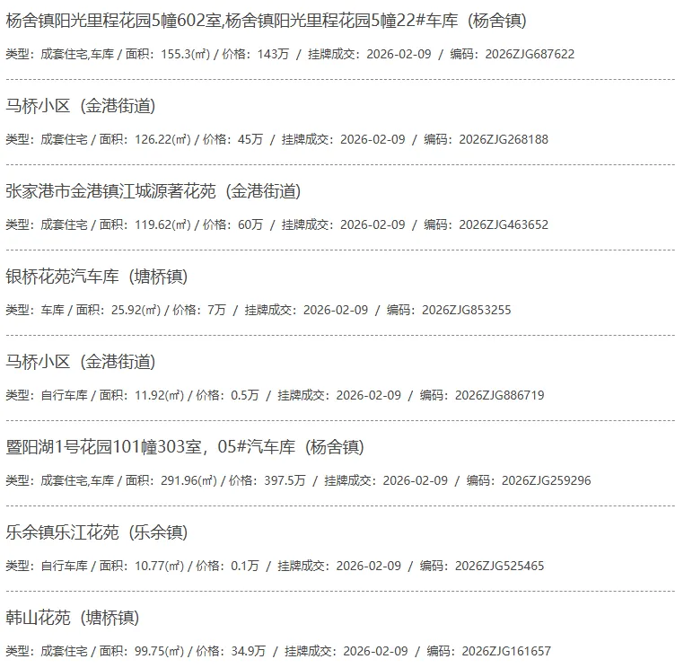 根据张家港房产网(www.zjgzf.cn)整理,(2026-02-09至2026-02-09)总共66套二手房网签挂牌成交(含自行车库及汽车库),数据根据住建局官方网签平台整理,并已同步至各对应小区的成交明细,特别提醒:此处数据及各小区成交数据中凡标注(来自网签挂牌)的,均是根据政府网签挂牌系统整理,价格可能不准,请谨慎采信;并仅作为您买房卖房的参考而非决定依据。以下为数据明细:
