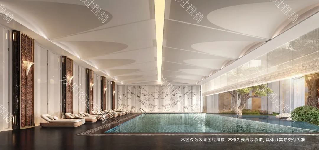 园林规划以中央绿轴为主线,融入自然灵感,配置景观水池、下沉庭院及连廊等节点,并围绕“私属俱乐部”概念打造涵盖健身、派对、社交与儿童游乐的全时段会所系统。