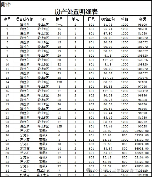 公司可处置存量房产共计35户(详见附件),均为分散式房源,楼层为五层、六层,户型面积为60-117平方米之间。