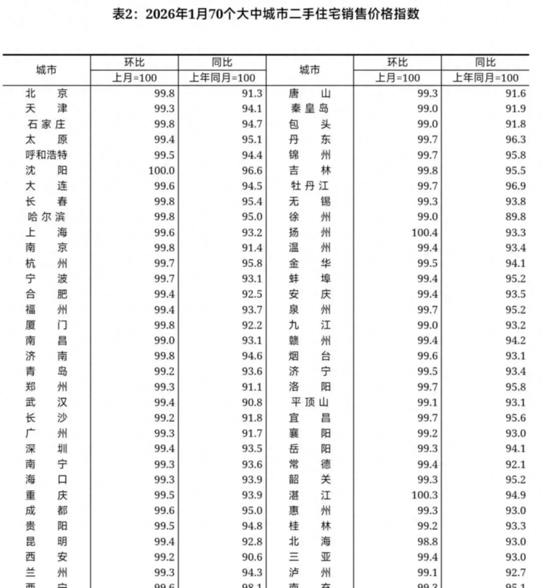 新房这边整体就平淡很多,一线城市1月新房价还是整体跌0.3%,跟上个月差不多,北京、深圳、广州都在跌,上海算是顶住压力了,价格大致持平,新房还在慢慢磨底,二手这边先动了一下,这一点算是挺关键,