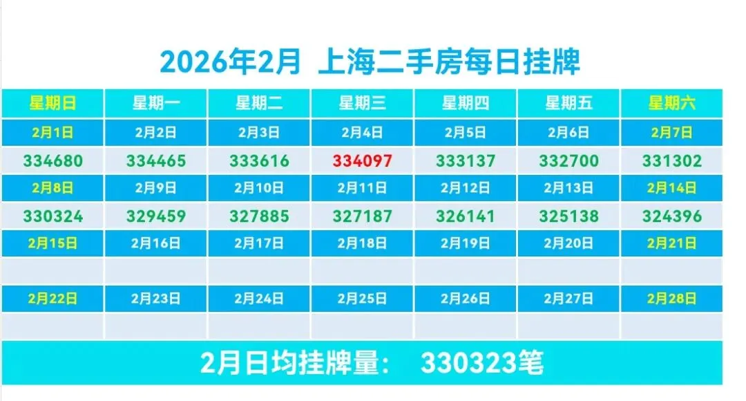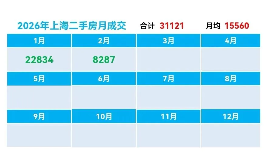 ♻️截止2026年2月14日,2025年上海二手房成交量合计254091套,月均21174套。