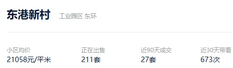 根据贝壳信息显示,东港新村目前211套挂牌出售,挂牌均价21058元/平。