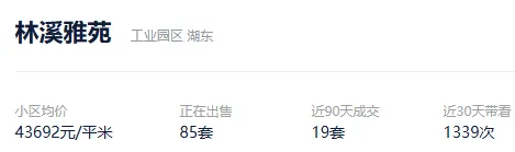 根据贝壳信息显示,林溪雅苑目前85套挂牌出售,挂牌均价43692元/平。