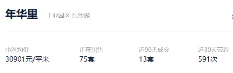 根据贝壳信息显示,年华里目前75套挂牌出售,挂牌均价30901元/平。