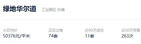 根据贝壳信息显示,绿地华尔道目前74套挂牌出售,挂牌均价50376元/平。