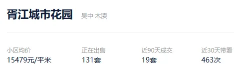 根据贝壳信息显示,胥江城市花园目前131套挂牌出售,挂牌均价15479元/平。