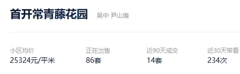 根据贝壳数据显示,2026年1月1日以来,吴中区交了474套二手住房,涉及了16个板块的240个社区及组团,套均成交面积116.61平,平均挂牌单套总价190万元,挂牌单价16274元/平,平均成交周期254天。