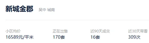 根据贝壳信息显示,新城金郡目前170套挂牌出售,挂牌均价16589元/平。