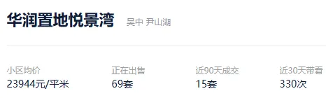 根据贝壳信息显示,华润置地悦景湾目前69套挂牌出售,挂牌均价23944元/平。