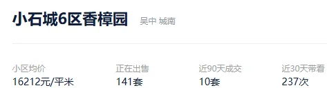 根据贝壳信息显示,小石城6区香樟园目前141套挂牌出售,挂牌均价16212元/平。
