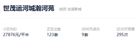 根据贝壳数据显示,今年以来,该社区成交了8套二手住房,套均成交面积124.73平,平均挂牌单套总价346万元,挂牌单价27771元/平,平均成交周期424天。