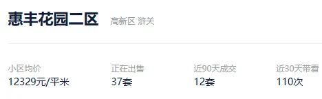 根据贝壳数据显示,今年以来,该社区成交了12套二手住房,套均成交面积94.17平,平均挂牌单套总价128万元,挂牌单价13610元/平,平均成交周期245天。