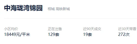 根据贝壳信息显示,中海珑湾锦园目前129套挂牌出售,挂牌均价18449元/平。
