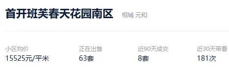 根据贝壳信息显示,首开班芙春天花园南区目前63套挂牌出售,挂牌均价15525元/平。