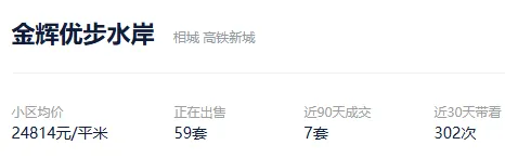 根据贝壳信息显示,金辉优步水岸目前59套挂牌出售,挂牌均价24814元/平。