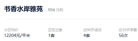 根据贝壳信息显示,书香水岸雅苑目前1套挂牌出售,挂牌均价12204元/平。