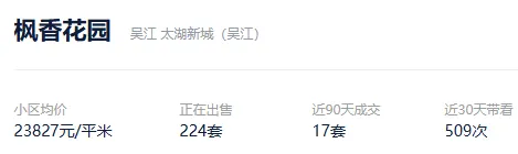 根据贝壳信息显示,枫香花园目前224套挂牌出售,挂牌均价23827元/平。