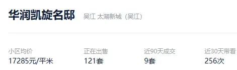 根据贝壳信息显示,华润凯旋名邸目前121套挂牌出售,挂牌均价17285元/平。