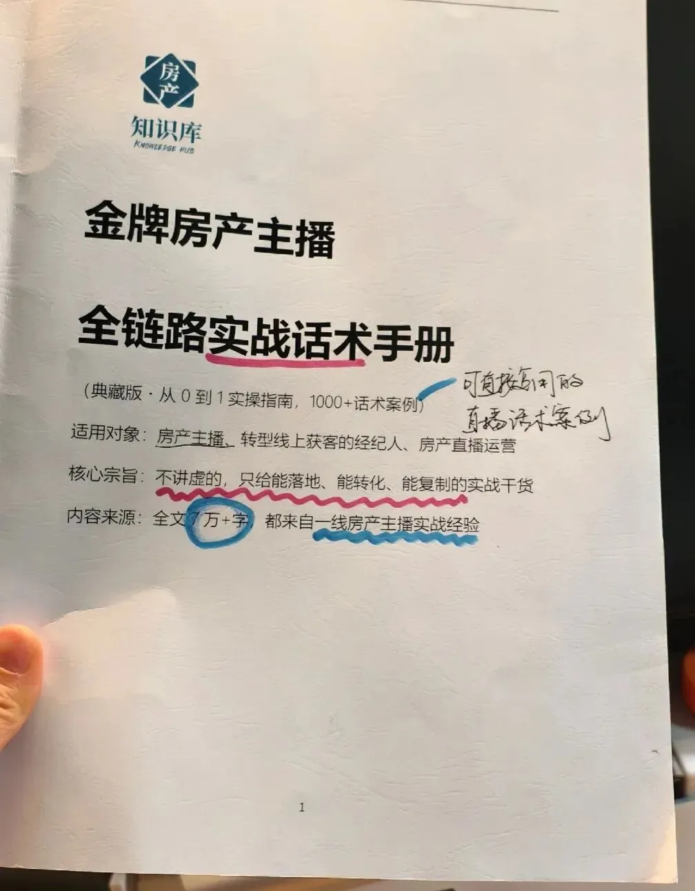 私信我“话术手册”领取我整理的《房产主播必备实战话术手册》。打印的纸质版。