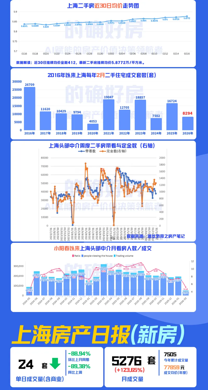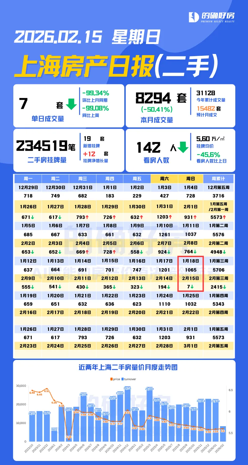 2026-02-16 上海市二手房成交量数据统计日报