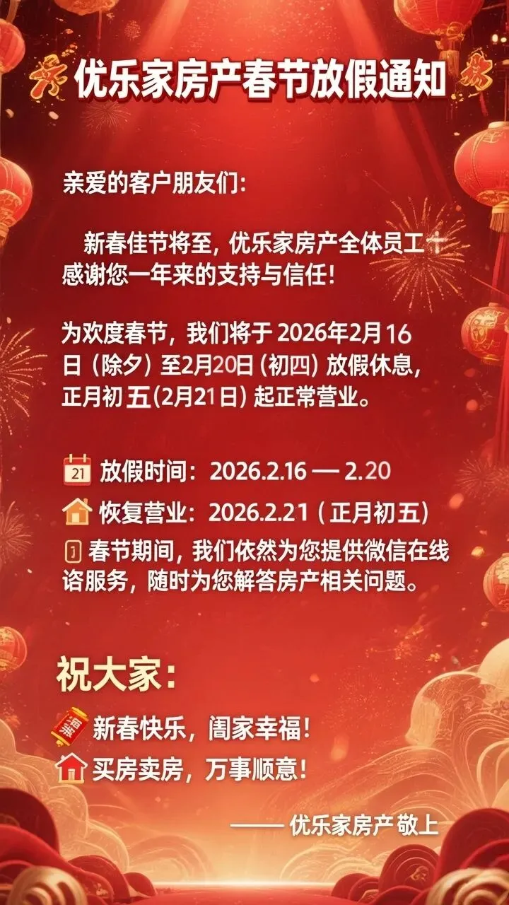 # 优乐家房产 ㊗您新年快乐 ⸜[爱心]⸝