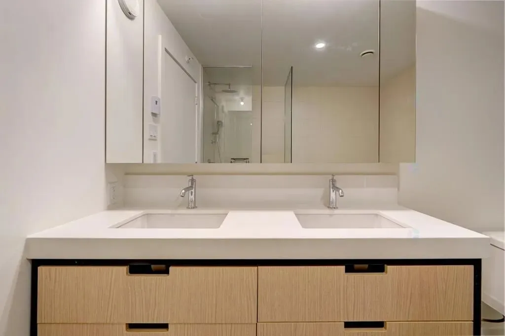 本公寓拥有两间卧室与两间浴室,整体居住面积为857平方英尺,布局精巧合理,在保障居住私密性的同时,营造出舒适自在的生活氛围。