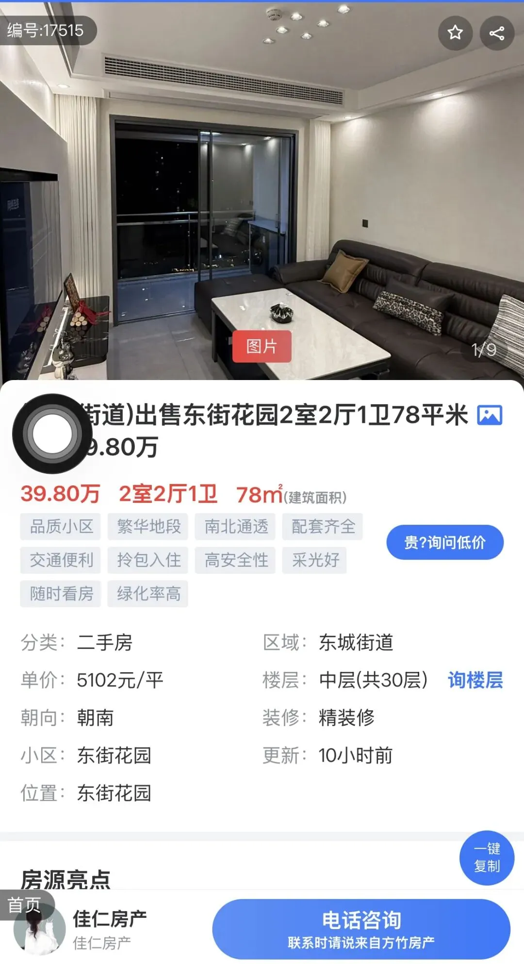 >【方竹房产】东街花园这套房很漂亮,拎包入住39.8万元!