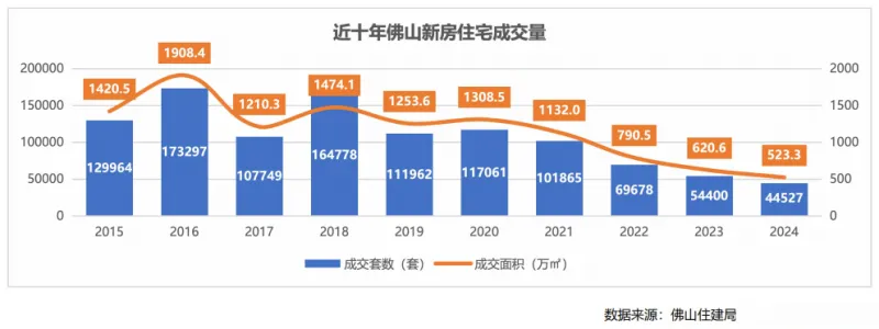 先看大盘。2024年佛山楼市确实不太乐观,一手住宅成交创了近十年新低,同比跌了18%;二手房稍微好点,但也跌了接近7%。