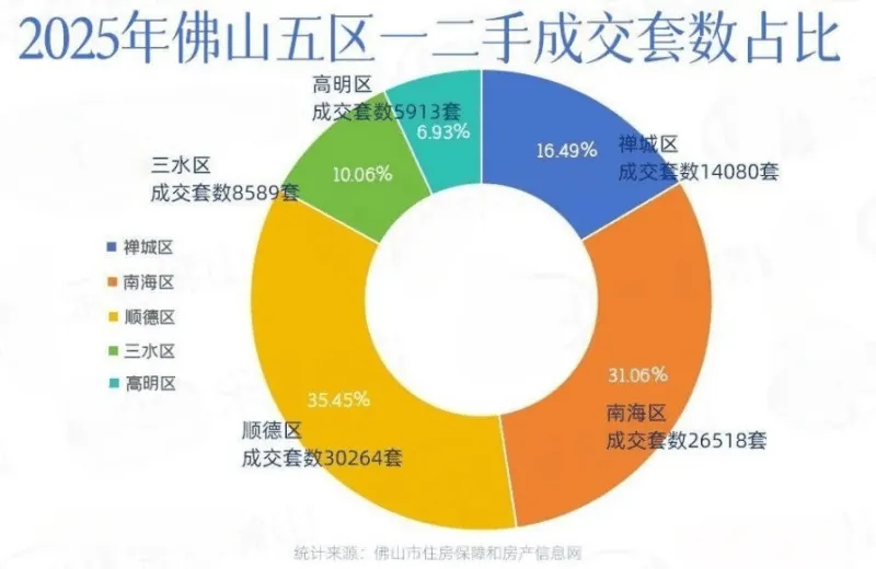来到2025年,顺德和南海这两个区,撑起了佛山超过三分之二的二手成交量。南海自己就占了31.06%,虽然成交量比顺德少点,但价格更高,单个楼盘的素质也更突出。