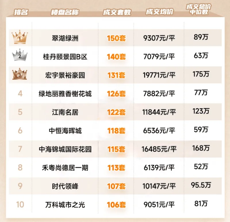 而按成交量排,格局又不一样。领头的是越秀星汇灯湖,卖了510套。热点区域则分布在三个方向:顶豪扎堆的千灯湖中轴、广州客青睐的北部临广片区(如里水),以及作为城市副中心的狮山。
