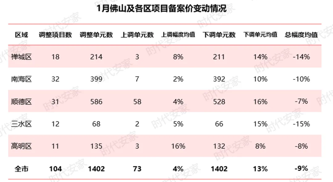 一个强烈的信号来自于新房备案价的调整。根据时代安家的统计,仅2026年1月份,南海区就有32个项目下调了备案价,涉及近400套房源,平均下调幅度达到10%。