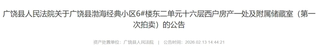 拍卖标的:广饶县渤海经典小区6#楼东二单元十六层西户(权证号为广饶20142472)房产一处及附属储藏室,面积139.6平方米,所在楼层16层,全部楼层20层,房屋精装修。储藏室6-2-33。