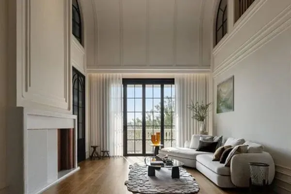 从玄关处,沿着流利的动线,步入了家的内部空间。第一站,来到了这个家的心脏区域,客厅。在缓缓踏入的时候,就能够体会到它所迎面而来的浓浓法式情韵。设计师Eric在这个面积富裕的空间里,以法式风格作为了主导,白色是它的主色调。在将一张曲线优雅的奶白色沙发,与从容自在的茶几,和一张素雅的白色地毯的组合下,这间客厅焕发出了浓厚的法式情调了。值得一提的是,在沙发背景墙上,则是一幅法国印象派的绘画,瞬时间,将这间客厅里悬挂了一种经典法式的意味来。而整间客厅,天花高挑,空间宽敞,在辅以法式元素的设计之中,绕显出精致与澹雅的美感。在这间舒适的客厅里,传递出了法式生活的慢节奏,也叙述出了一段美妙的生活故事来。它美得如此触动心弦,也美得让人驻足凝视,不得不停下脚步来,细细品味一番了。可以说,这间客厅是设计师Eric在家里浓墨重彩的一笔了。