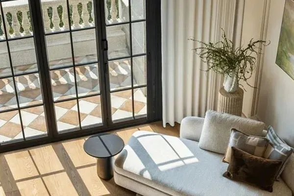 在客厅里游走着,慢慢的,我们感到有一股暖意涌入,一眼望去,是一扇典雅的门窗。这窗户让人与天地同框,这窗户让人与日月同辉,这窗户让人赏四季更迭。谁开一扇窗,纳此千万境。在光影缱绻,光影翩跹之间,流露出了温雅的气韵。自然光是大自然最慷慨的馈赠,也是空间温和氛围的最佳推手。在光影漫漫之间,释放出阳光的暖意。在我们身处其中的时候,也体会到了这空间被暖暖的阳光所关照了。光,它来自万里晴空,它耀眼迷离,它令人喜爱了。在充沛的自然光充斥在空间里的时候,仿佛也抒写出了一首动人的回响在心底的诗篇了。如路易斯·康所说:“阳光只有当它撞上了空间,它才知道空间究竟有多棒了。”